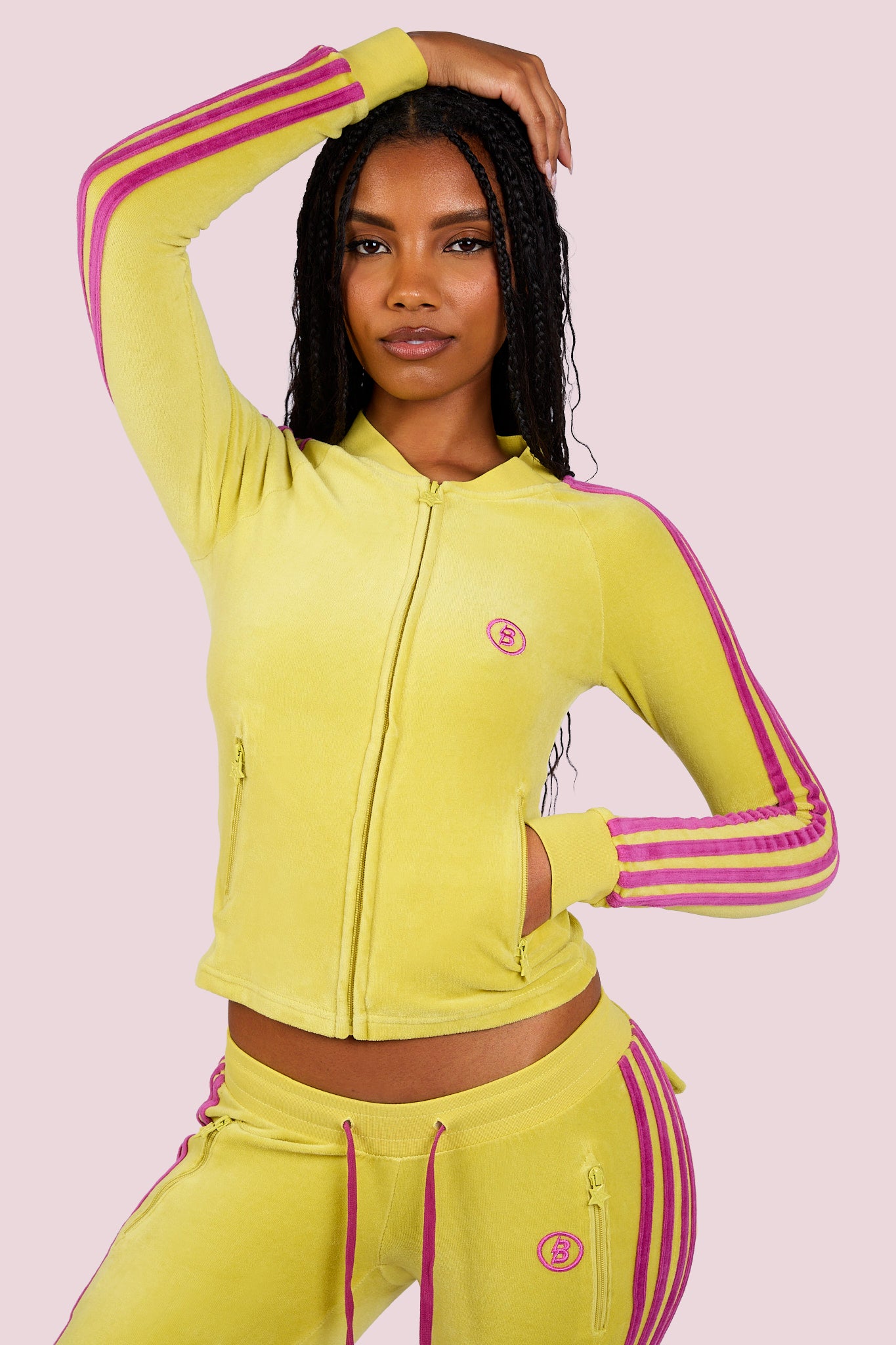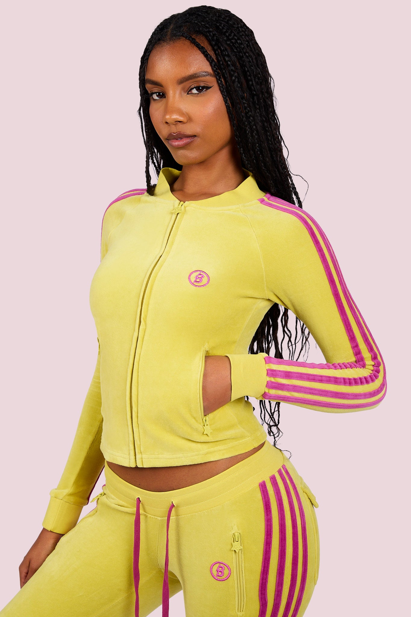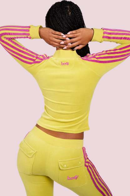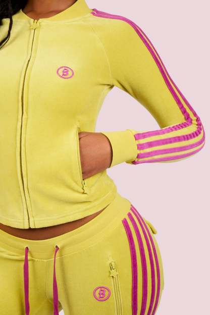BODY VELOUR TRACK JACKET (LIME YELLOW/PINK)
