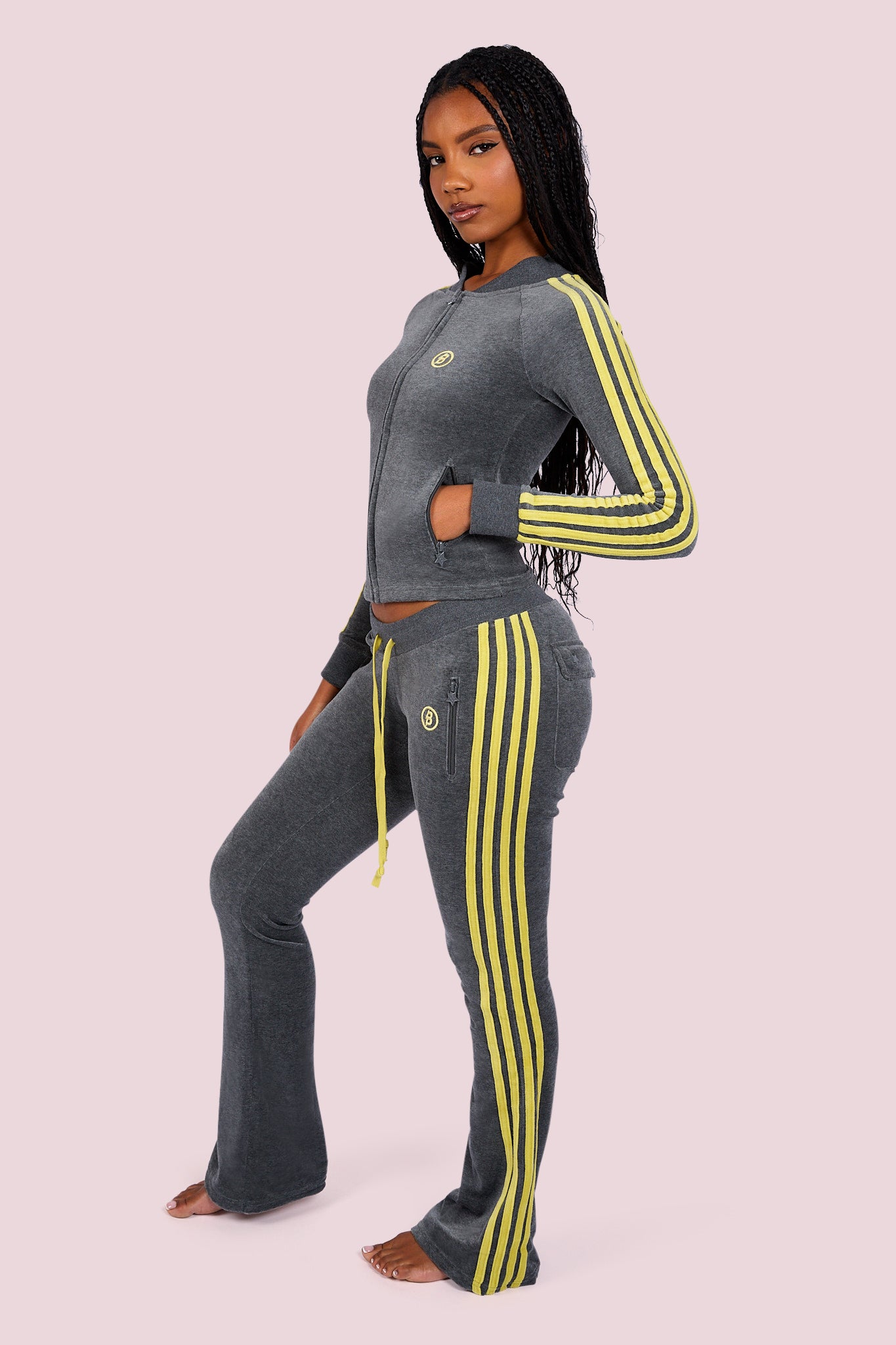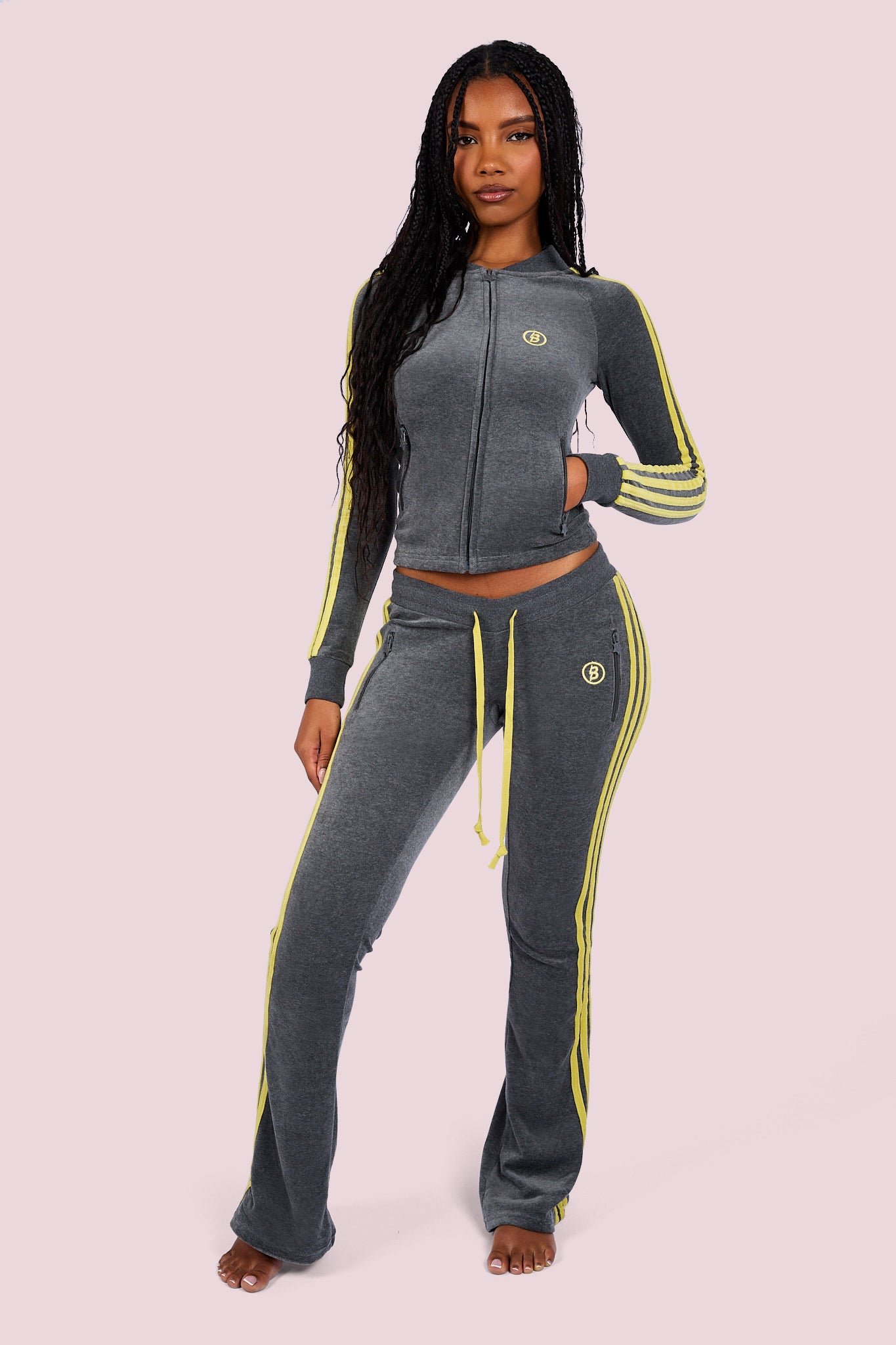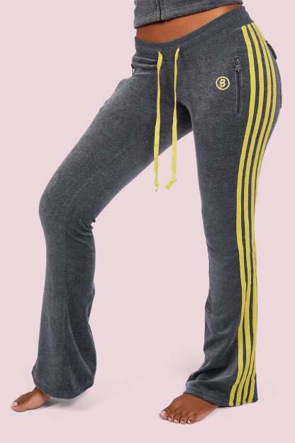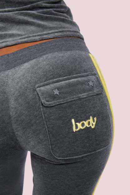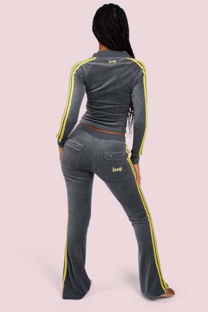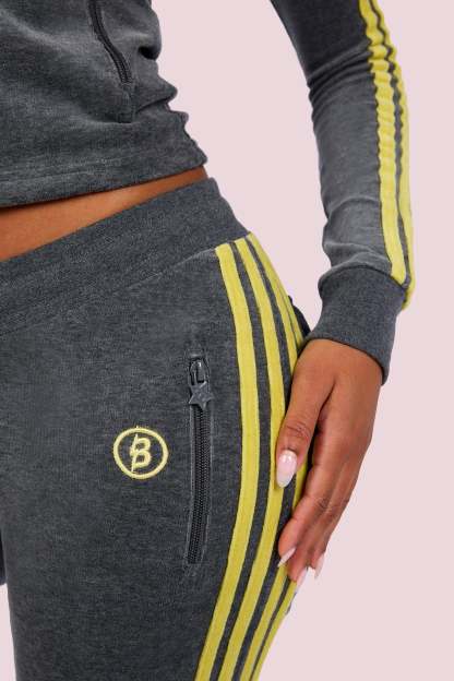 BODY VELOUR TRACK PANTS (CHARCOAL/LIME YELLOW)