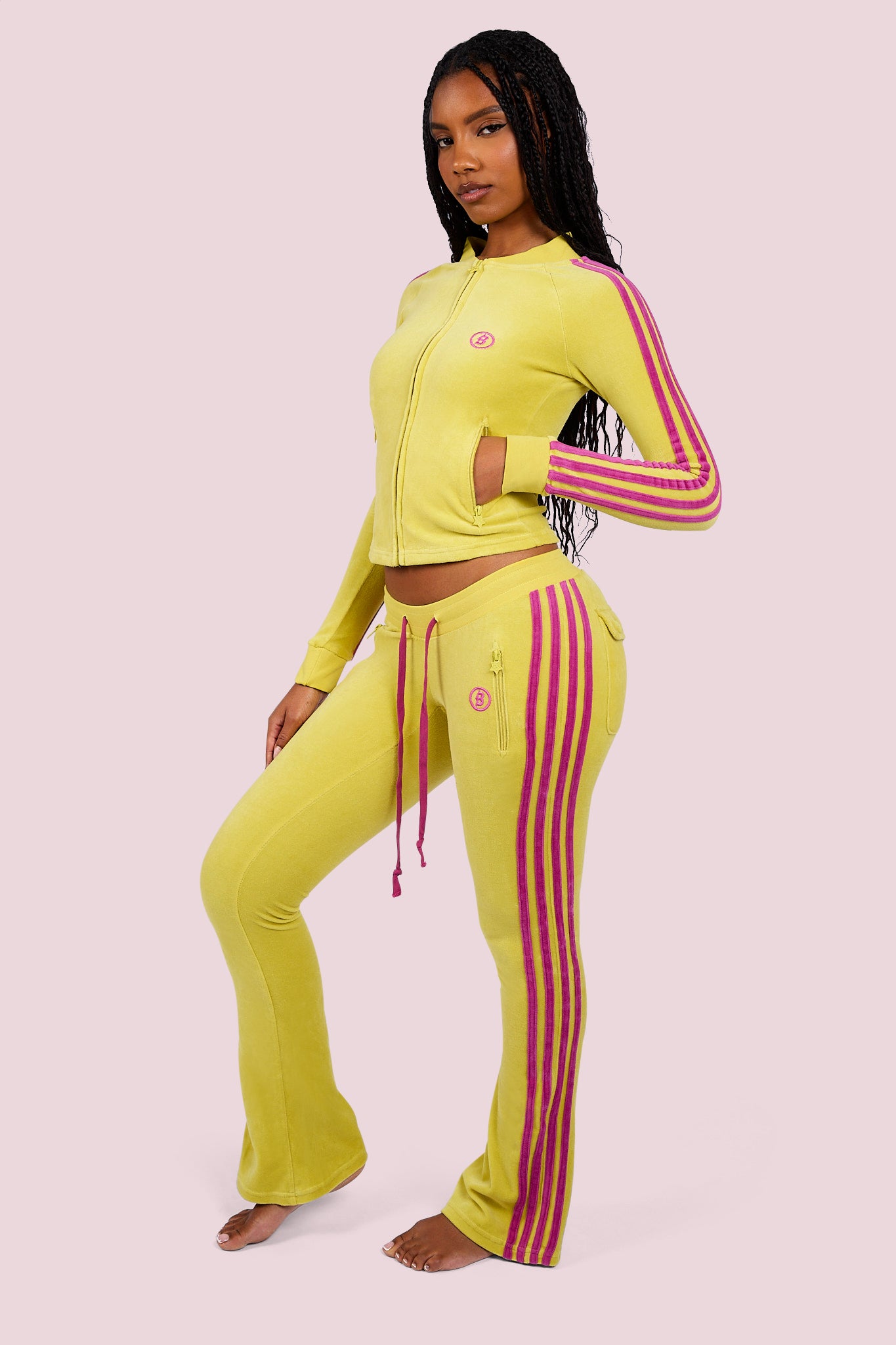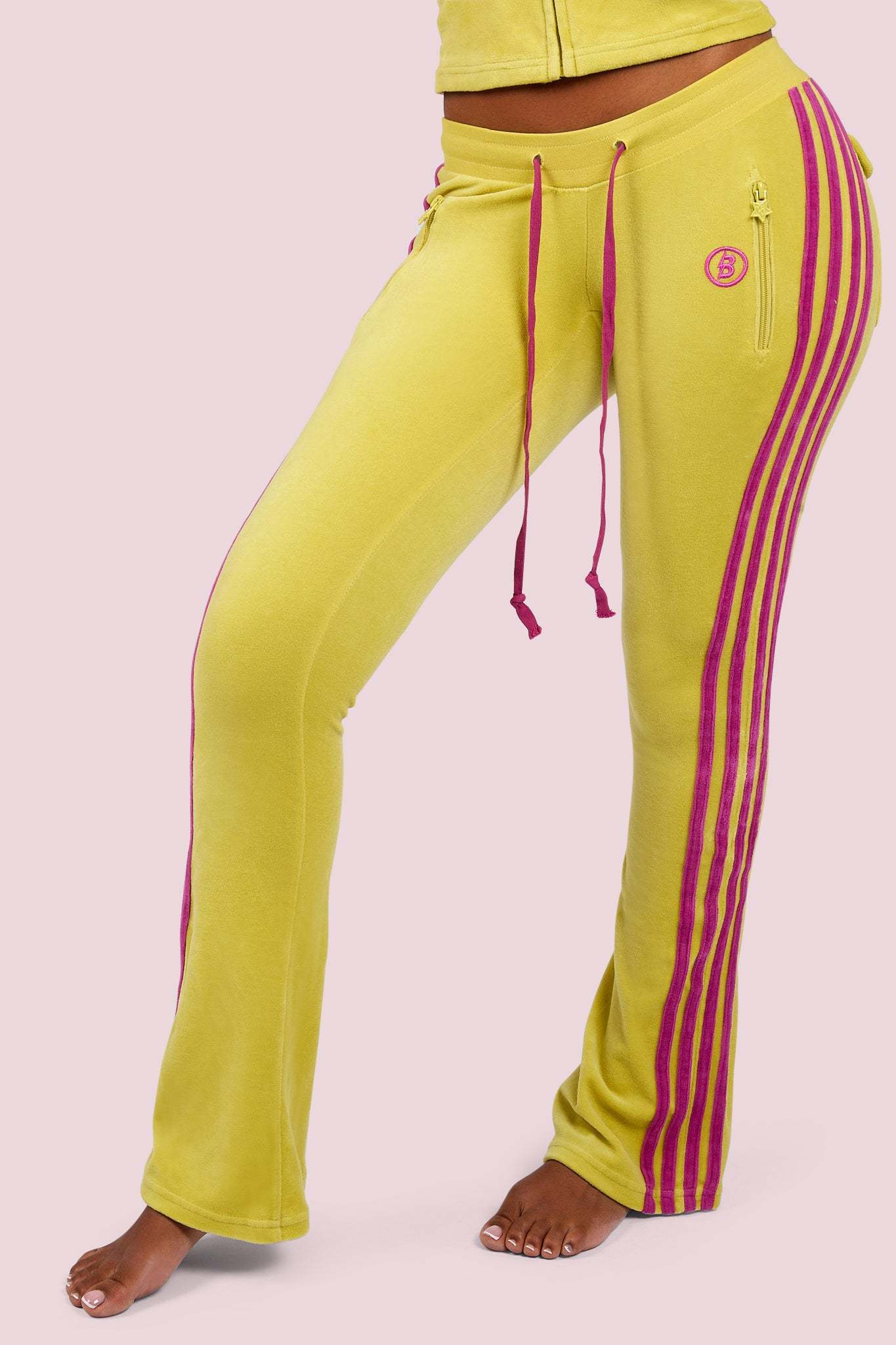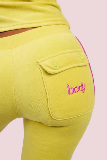 BODY VELOUR TRACK PANTS (LIME YELLOW/PINK)