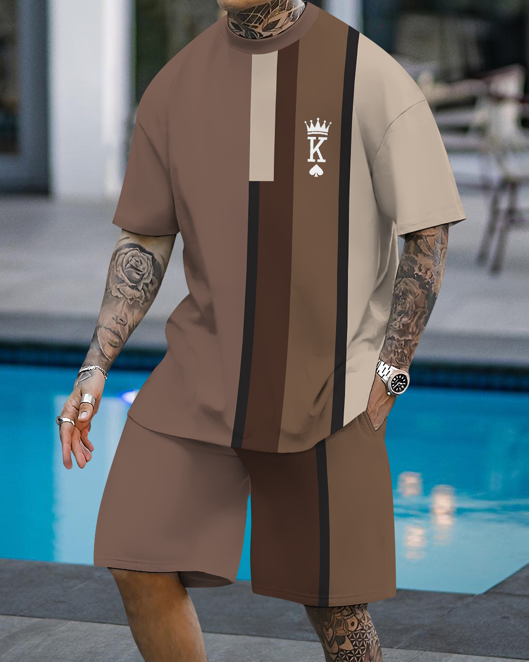 Men's fashion casual geometric print short sleeve two-piece set