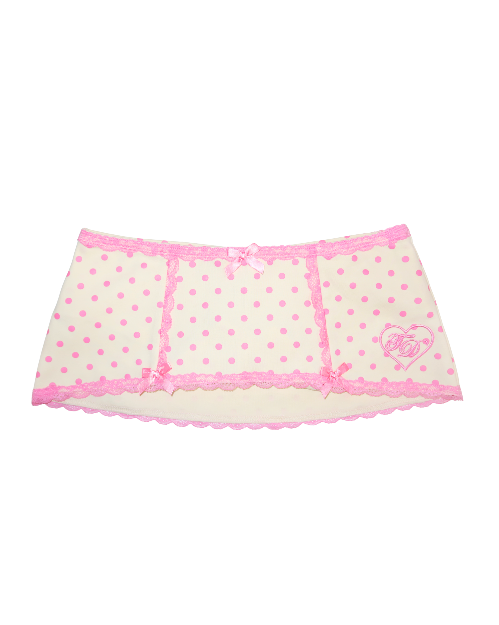 Our scoop neck babydoll top with puff sleeves and our matching skort in our Pink Lemonade polka dot! ♡