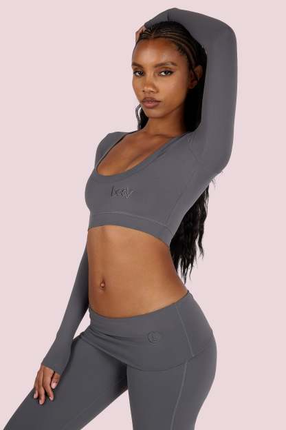 YOGA LONG SLEEVE CROP TOP (CHARCOAL)