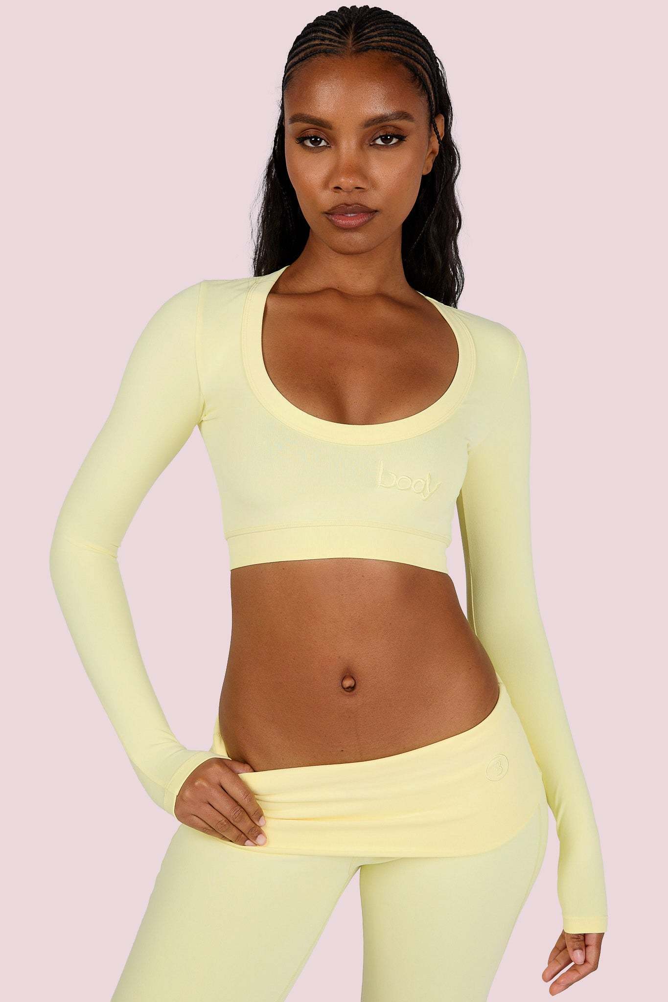 The Yoga Long Sleeve Crop Top is crafted from our ultra-stretchy, compressive fabric for a supportive, curve-hugging fit that contours every inch. Designed for versatility and comfort, this long-sleeve version offers added coverage while maintaining that sleek, snatched silhouette — ideal for larger busts and all body types. Finished with our signature BODY embroidery.