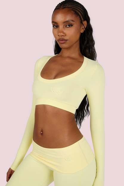 YOGA LONG SLEEVE CROP TOP (LEMON YELLOW)
