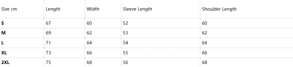 Length | Width | Sleeve Length | Shoulder Length |